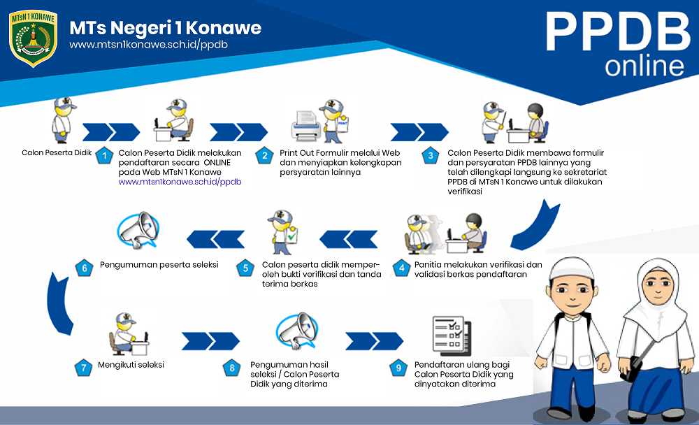 5. Formulir yang telah diprint out dan ditandatangani serta syarat pendaftaran lainnya diserahkan langsung ke Panitia di Sekretariat PPDB di MTsN 1 Konawe